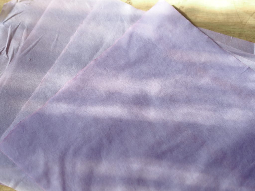 和紙を一枚、また一枚と紫の中へと浸していく。